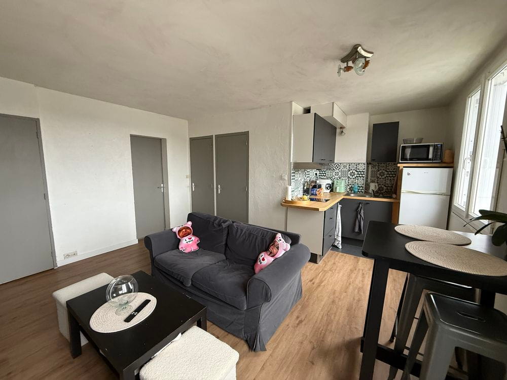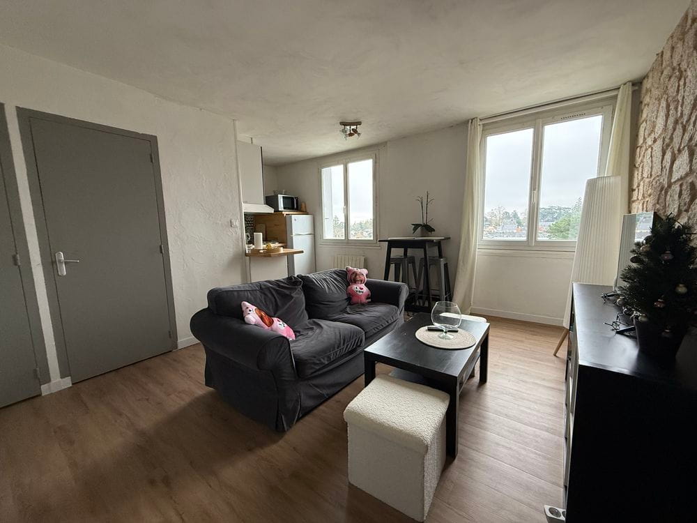 Au calme et en dernier étage, appartement trois pièces entièrement rénové comprenant: un salon avec cuisine ouverte aménagée, deux chambres, une salle d’eau et un wc. Une cave et un garage.