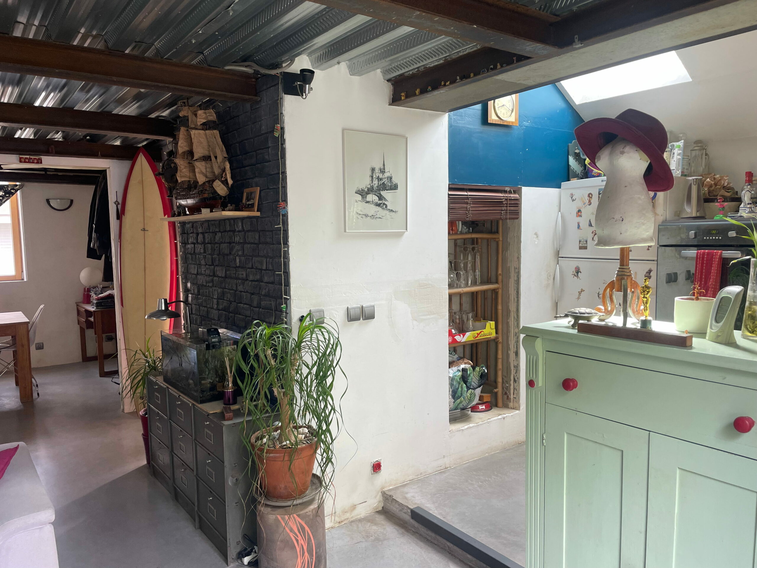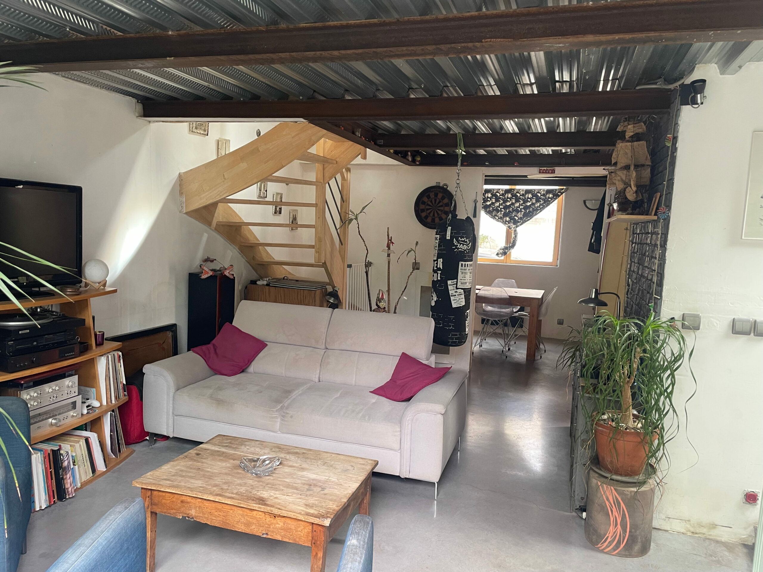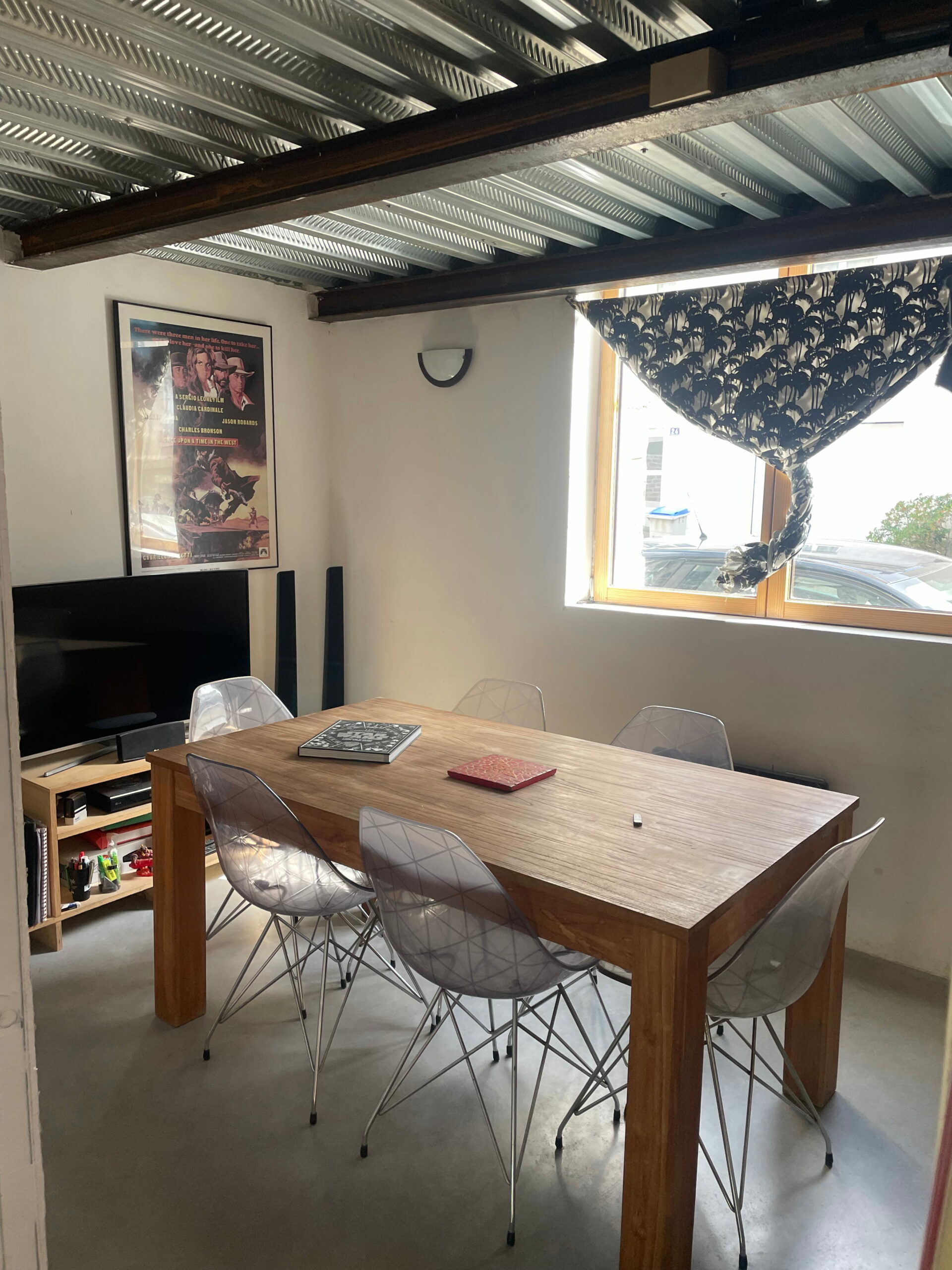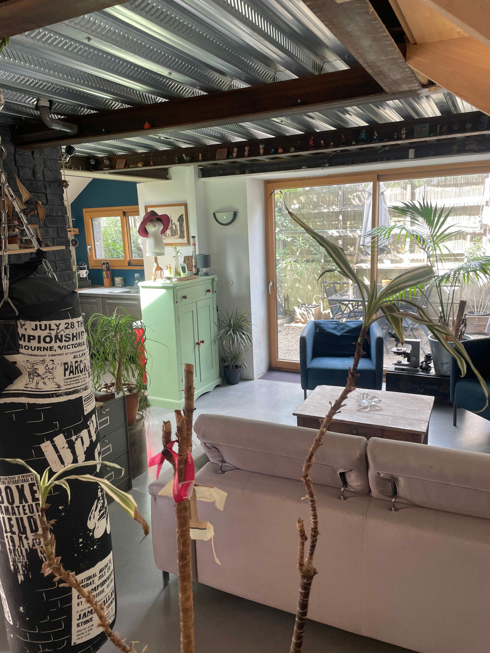 De larges baies vitrées ouvrent sur un jardinet et une annexe.